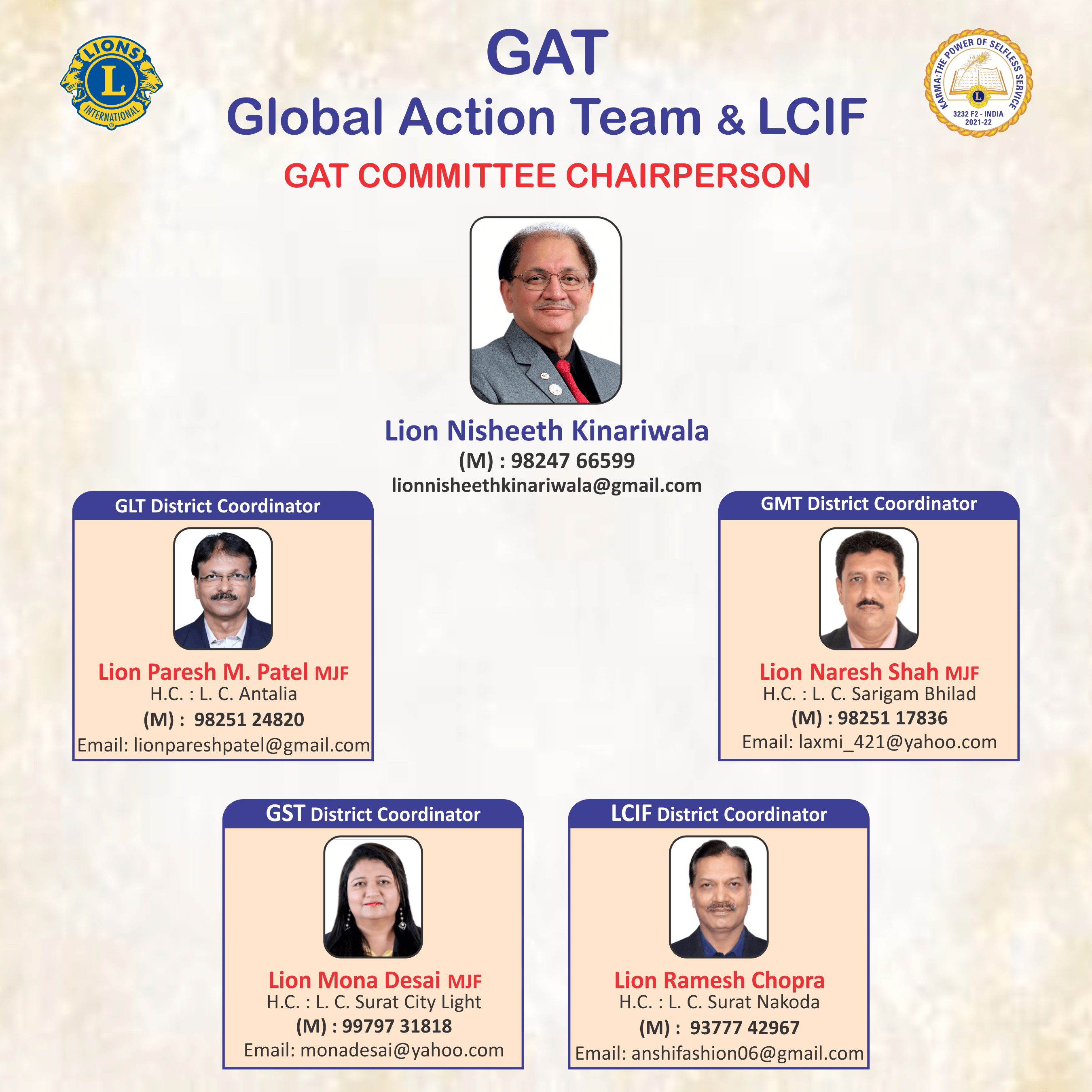 District Governor E-mail : lionpareshpatel@gmail.com